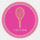 Tennis Chic Pink Gold Custom Name Classic Round Sticker