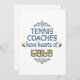 Let your appreciation for a great tennis coach shine with this colourful design with metallic flourishes and and the words - Tennis Coaches have hearts of Gold. Makes a great gift.
