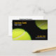 Tennis Coach Trainer Practice Lessons Appointment Business cards. Elegant and modern business card for professional tennis coaches, trainers, partners, instructors, who provide tennis lessons or tennis training. An appointment card on the back. It's a great business card to help you promote your tennis business especially in tennis clubs. The design features 2 tennis balls on a black background. A standard business card size. Business card inspiration for any kind of tennis related business. Business card dimensions are "3.5"x 2". This business card is designed by http://www.superdazzle.com