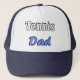 Tennis vader. Vrolijke pet. Kleuren: blauw, wit en zwart. Leuk om als trotse vader te dragen.