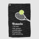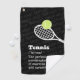 Torchon de tennis personnalisé avec une simple raquette de tennis et une définition de citation de tennis amusante "Tennis, la combinaison parfaite de l'exercice et du serment" en noir et blanc et gris avec des mots de jurer subtils dans l'arrière - plan. Un cadeau parfait sur le thème du tennis pour n'importe quel joueur de tennis avec une bouche fétide qui pourrait utiliser une serviette sueur pour son sac de sport.