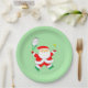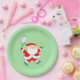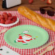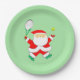 Creative tennis Christmas holiday party plates featuring funny Santa Claus tennis player.