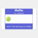 Fun sticker for your tennis team or club. Just fill in your name, stick it on your shirt and introduce yourself to your opponent.