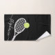 Serviette de tennis personnalisée avec un simple graphique en raquettes de tennis et un nom ou un texte personnalisé et un joli monogramme de police de script moderne en noir et blanc. Grand cadeau pour une joueuse de tennis femme ou fille avec un look féminin et féminin avec un design moderne et minimal sur un cadeau utile sur le thème du tennis.
