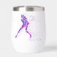 Tennis Pink Pixels Personalized Name Women's Wine Tumblers features a modern design of a female tennis player pixellated in pink and purple with your custom text such as personalized name, tennis team, tennis club and more written below in a popular typography. Makes a fabulous gift for tennis players. Created by Evco Sports www.zazzle.com/store/evcosports