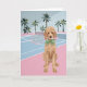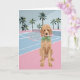 These greeting cards feature a watercolor portrait of a tan poodle holding a tennis racket on a pink tennis court.