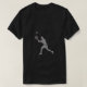 This sleek black T-shirt showcases a unique tennis player silhouette, crafted from tiny white figures, mid-serve with a racket and ball. Perfect for tennis enthusiasts and art lovers, this minimalist design blends sport and creativity. Ideal for casual wear or as a thoughtful gift for those who appreciate innovative sports apparel.