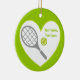 Tennis racket and ball round ceramic ornament. It showcases a grey racket, a green tennis ball and your text on white background in a heart. Personalize it and add the text “Best tennis player” or monogram, name or your message. The perfect gift for the tennis player or tennis lover in your life. Some elements courtesy of vectorportal.com.
