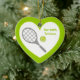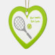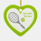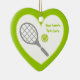 Tennis racket and ball heart shape ceramic ornament that displays a grey racket, a green tennis ball and your text on white background with green border. Personalize it and add the text “Best tennis player” or monogram, name or your message. The perfect gift for the tennis player or tennis lover in your life. Some elements courtesy of vectorportal.com.