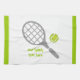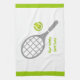 Raquette de tennis et serviette de cuisine à bille affichant une raquette grise, une balle de tennis verte et votre texte sur arrière - plan blanc avec bordure verte. Personnalisez-le et ajoutez le texte "Meilleur joueur de tennis" ou monogramme, nom ou votre message. Le cadeau idéal pour le joueur de tennis ou l'amoureux du tennis dans votre vie. Certains éléments sont offerts par vectorportal.com.