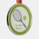Tennis racket and ball Metal Ornament that showcases a grey racket, a green tennis ball and your text on white background with green border. This cool design is a template and it is completely customizable. Personalize it and add the text “Best tennis player” or monogram, name or your message. Some elements courtesy of vectorportal.com.
