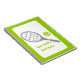 Tennis racket and ball notebook that showcases a grey racket, a green tennis ball and your text on white background with green border. This cool design is a template and it is completely customizable. Personalize it and add the text “Best tennis player” or monogram, name or your message. Some elements courtesy of vectorportal.com.