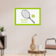 Tennis racket and ball poster featuring a grey racket, a green tennis ball and your text on white background with green border. This cool design is a template and it is completely customizable. Personalize it and add the text “Best tennis player” or monogram, name or your message. Some elements courtesy of vectorportal.com.