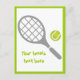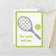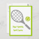 Tennis racket and ball vertical postcard that showcases a grey racket, a green tennis ball and your text on white background with green border. This cool design is a template and it is completely customizable. Personalize it and add the text “Best tennis player” or monogram, name or your message. Some elements courtesy of vectorportal.com.