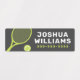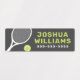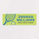 Tennis racket and ball waterproof property labels in dark grey, green and blue with customizable name and telephone number. All colours are customizable. Great for labelling your belongings