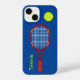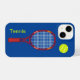 This is a colourful graphic red tennis racket and tennis ball of classic colour.
