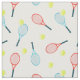 Cute fabric with illustrated tennis rackets and tennis balls pattern. White background.