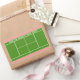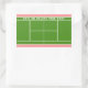 Tennis-themed gift stickers, party favour labels and envelope seals featuring tennis court on pink background. Edit text to personalize.
