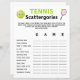 Tennis Scattergories Game is a party game. You have 2 mins to list words that begin with each letter of the word "GAME" for each category below. Points are awarded when players are the only one with that answer! Most points wins!