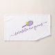 Personalized tennis team name hand towel in Purple and White with a tennis racket design and custom text in a feminine modern script font. Any girls or womens tennis teammate would appreciate the elegant look on this modern and minimal useful tennis themed gift.