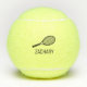 Personalized tennis balls printed with custom name or text in a simple, classic, modern font and simple tennis racquet monogram. They are perfect for a tennis player birthday gift or tennis theme party decor or favours and are useful modern monogrammed practice balls.
