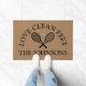 Tennis theme personalized doormat, edit the text yourself when you order. Paste in the following link for more doormat designs. https://www.zazzle.com/collections/doormats-119467918691954155