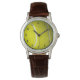 I like the illustrative watch with the lady on it. It is a great reminder that I am blessed and it has a very sturdy leather band. The colors are true and vibrant. Love the color of the Leather also. Very nice.