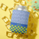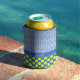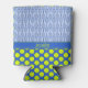 Tennis balls create a bright polka dot pattern on a blue background on both the front and the back of this fun can cooler for tennis fans. On the front, tennis rackets are also used in a complementary pattern, and there is a blue stripe for you to personalize with a name or other text.