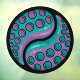 Vector cartoon illustration of a yin-yang symbol made from two octopus tentacles. Keywords: tentacle, octopus, squid, calamari, yin, yang, yinyang, animal, cartoon, symbol, ocean, sea, cephalopod, mollusk, cuttlefish, arm, sucker, yin-yang, cute, shiny