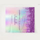 Une tapisserie pour une fête d'anniversaire de 10e anniversaire (ou de tout âge) fillette et glamour. Un arc-en-ciel, arrière - plan holographique couleur unicorne avec des gouttes de parties scintillant violet et rose faux. Personnalisez et ajoutez un nom, 10 ans et une date Le texte : Le nom est écrit en violet avec un script de style manuscrit moderne. Peut être utilisé comme bannière de welcom, décoration murale pour la fête ou comme fond de cabine photo.
