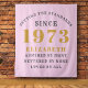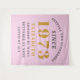 Célébrez l'occasion spéciale d'un 50e anniversaire avec cette luxueuse bannière murale rose et grise, parfaite pour personnaliser avec le nom et l'année de votre naissance, 1973. Cette grande tapisserie est ornée d'un beau design unique et d'une police stylée pour une célébration d'anniversaire inoubliable et unique en son genre. Montrez cette garde spéciale à la fête et profitez des souvenirs pendant des années à venir.