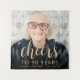 Cette tapisserie de 90ème anniversaire personnalisée présente l'invité d'honneur photo, nom, et anniversaire, ainsi que le mot "Cheers" dans élégant script de calligraphie dorée. Un écran sombre permet de faire apparaître le texte. Un excellent moyen de célébrer quelqu'un qui a quatre-vingt-dix ans !