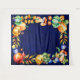 Accessoire de toile de fond pour photo ou arrière-plan de photo. De jolies citrouilles aquarelles élégantes, feuilles, raisins, fruits et noix forment un cadre. Utiliser pour Thanksgiving, Friendsgiving, Fête de la récolte, Trunk of Treat ou soirées d'Halloween. Demandez à vos invités de se tenir debout devant cet arrière-plan de récolte automnale et utilisez-le pour prendre des photos selfie ou des photos de groupe. Fond bleu foncé.