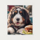 Un adorable Bernerdoodle au diner avec un cheeseburger il a commandé l'art généré par l'IA