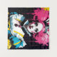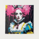 Imaginant Alice comme le lapin avec l'imaginaire de cheveux roses L'IA produit de l'art dans les couleurs de rose, bleu, jaune, noir et blanc avec des éclaboussures d'encre.