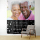 Une tapisserie célébrant un 60e anniversaire de mariage diamant. Un fond noir moderne élégant, décoré de faux diamants. Personnalisez et ajoutez votre propre photo de haute qualité du couple heureux. Le texte : Les noms sont écrits avec une police manuscrite moderne blanche. Modèles pour les noms et une date. Peut être utilisé comme décoration murale pour la fête, un fond de photomaton ou un souvenir.