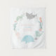 Cette tapisserie d'anniversaire sur le thème des animaux marins représente une baleine, un requin tigre, une méduse, une tortue marine et un hippocampe nageant tous en cercle.