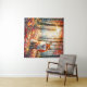 La tapisserie présente une aquarelle d'un renard alerte dans une forêt pendant la saison d'automne, entourée de feuilles d'automne. Portrait aux couleurs chaudes, oranges, rouges, jaunes et marron, le soleil brille à travers les arbres. Parfait pour la saison d'automne !