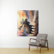 Cette peinture d'aquarelle sereine capture un orignal majestueux debout gracieusement au lever du soleil, baigné de teintes dorées chaudes. Les coups de pinceau doux et l'atmosphère brumeuse créent une scène paisible d'inspiration nature, parfaite pour les amateurs de faune et d'art paysager.