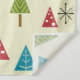 Un motif vintage de l'ère atomique avec des arbres de Noël colorés vert, bleu et rouge avec des motifs rétro cool, ainsi que des starbursts Spoutnik.