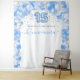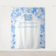 Cette tapisserie élégante de Quinceañera présente un arc de ballons scintillants dans diverses nuances de bleu, d'argent et de blanc. Des banderoles et des confettis tombants en bleu et blanc complètent l'ambiance de la fête. Ajoutez votre nom pour personnaliser. Facile à personnaliser en cliquant sur "Personnaliser". Peut être utilisé comme bannière de bienvenue, décoration murale pour la fête ou comme toile de fond pour un photomaton.