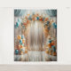 Jolie arche en montgolfière turquoise et orange pastel avec un arrière - plan de rideau magnifique, tapisserie suspendue, cadre élégant de photos d'anniversaire d'argent ou d'or, photos Mariages, anniversaires ou tout événement ou occasion