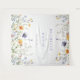 Ce design présente une bordure colorée de fleurs sauvages d'aquarelle dans les tons violet, or, vert et bleu.