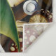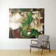 Chat à cocon principal orange avec un petit dragon vert qui roule autour sur une table. Autour d'eux sont des dés, des pièces d'échecs, des runes, des baguettes, de l'épée et bien plus encore.