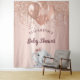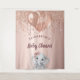 Pour un Baby shower élégant. Un arrière - plan rose à l'apparence métallique. Décoré d'or rose, gouttes de parties scintillant rose, look goutte à goutte de peinture, parties scintillant, serpentins de fête, ballons et une adorable petite fille d'éléphant. Personnalisez et ajoutez le nom et une date. Peut être utilisé comme bannière de bienvenue, décoration murale pour le baby shower ou comme toile de fond photo.