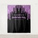 Tapisserie de cabine photo chic et amusante pour votre soirée de bachelorette avec fausse parties scintillant violet brillant qui descend des coins contre un arrière - plan noir et "Bachelorette Party" dans un script violet. Vous pouvez personnaliser davantage avec votre nom et votre date de fête.