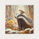 La tranquillité douce apporte un sentiment de joie comme un blaireau et un moineau profiter du printemps à venir par une journée froide dans une scène de style rustique et illustré agrémentée d'un brouillard de fleurs colorées et juste un soupçon de neige encore accroché au sol.