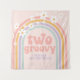 Bannière de 2e anniversaire Two Groovy inspirée des années rétro avec un arc-en-ciel pastel de style hippie et des marguerites