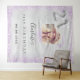 Une tapisserie de bienvenue pour une fête de 21e anniversaire girly et glamour. Un fond argenté factice décoré de poussière de paillettes violette fausse. Personnalisez et ajoutez une photo de haute qualité, un nom et une date. Le numéro 21 est écrit avec une police de caractères style ballon.