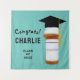 Félicitations à l'école de pharmacie créative bannière de fête et fond de photo avec bouteille d'ordonnance et nom du pharmacien. Pour personnaliser le texte de modification.